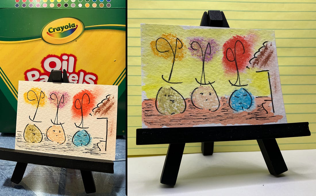 Dear reader, thanks again for stopping by. Freebies - Art and words from the museum. https://davidlwhite.substack.com/p/freebie *_____________________ RADIO FREE DAVID _____________________ * Measuring Moments Perhaps some sort of a meter Washing organic blueberries This pot simmering … © David L White *_____________________ RADIO FREE DAVID _____________________ * Forever Assured We … © David L White *_____________________ RADIO FREE DAVID _____________________ * The Calling Somewhere in the ninth grade timeline I quit my bicycle paper route and started working part time for my grandparents in their mom and Pop restaurant. Grandpa taught me how to boil water. He certainly set the bar for pizza, Italian Beef, and bullshi …, I mean, storytelling. Grandma Rachel paid for piano lessons when I was ten to twelve years old. I was my grandmother’s first grandson. Funding was redirected as other babies came along. I remember the first time I could reach an octave on one hand. It was 1965 and Lara’s Theme from Doctor Zhivago. A line that Waylon Jennings wrote in the second verse of his song Amanda was “I got my first guitar when I was 14.” I do have a soft spot for that … every time it goes by. I got my first guitar when I was fourteen. My friend Jay and I wrote a few songs. He played beatbox on his trumpet case and had a reel to reel tape recorder. We wrote some songs. I’ve written a few songs. Apparently it did not spark enough of a fire in me to explore performing. I didn’t really want to lug the amp. I also do not haul around my books or art in the car. The real pleasure is in the creation itself. And, also in the ninth grade, we had a Spanish teacher who was perhaps fresh out of college and probably on some teacher exchange program. She was from Argentina. We had a semester long project in which I wrote two short poems. In Spanish. I took a whole semester to write two short poems. In Spanish. There was a lot of looking out the window. In Wisconsin. She seemed so impressed with my usage of her native language that she made copies of the poems and sent them to her professor in Buenos Aires. My memory tells me that he sent back a thumbs up. There’s no one to check with about that anymore. The poems are gone, but the intent of them, that I should have a peaceful life, remains with me. So far so good. It seems safe to say that’s when I started writing. What is still not clear is why I think you might be interested in thoughts that pass through me. Perhaps to some degree we are all interested in comparing notes about this weird and mostly wonderful life. I do remember, from a bit of poetry from English class, that I did not hear a voice that resonated with me. I did not hear my voice. So I began to speak. … Recently, a fellow I’ve some acquaintance with for nearly thirty years, asked what I’m up to after a few years of retirement. I said “reading and writing” and you should have seen him screw up his face. I was as surprised as he seemed to be. Bewilderment for both of us. Really? Are you kidding? … Yesterday in church a young woman, new member as of this last year, has heard the call again; having started for her in ninth grade. She is moving on into ministry elsewhere. God speed, girl. Hearing her speak of the call, several times since the ninth grade, resonated with me as I had only written these words for this piece the day before. Perhaps I took a call from the Muses. *_____________________ RADIO FREE DAVID _____________________ * That’s it for the moment. David P.S. Don’t forget to look at the freebies. P.S.S. My first ATC, or Artist Trading Card. Thank you for visiting. Take some time for your self. © 2025 David L White |