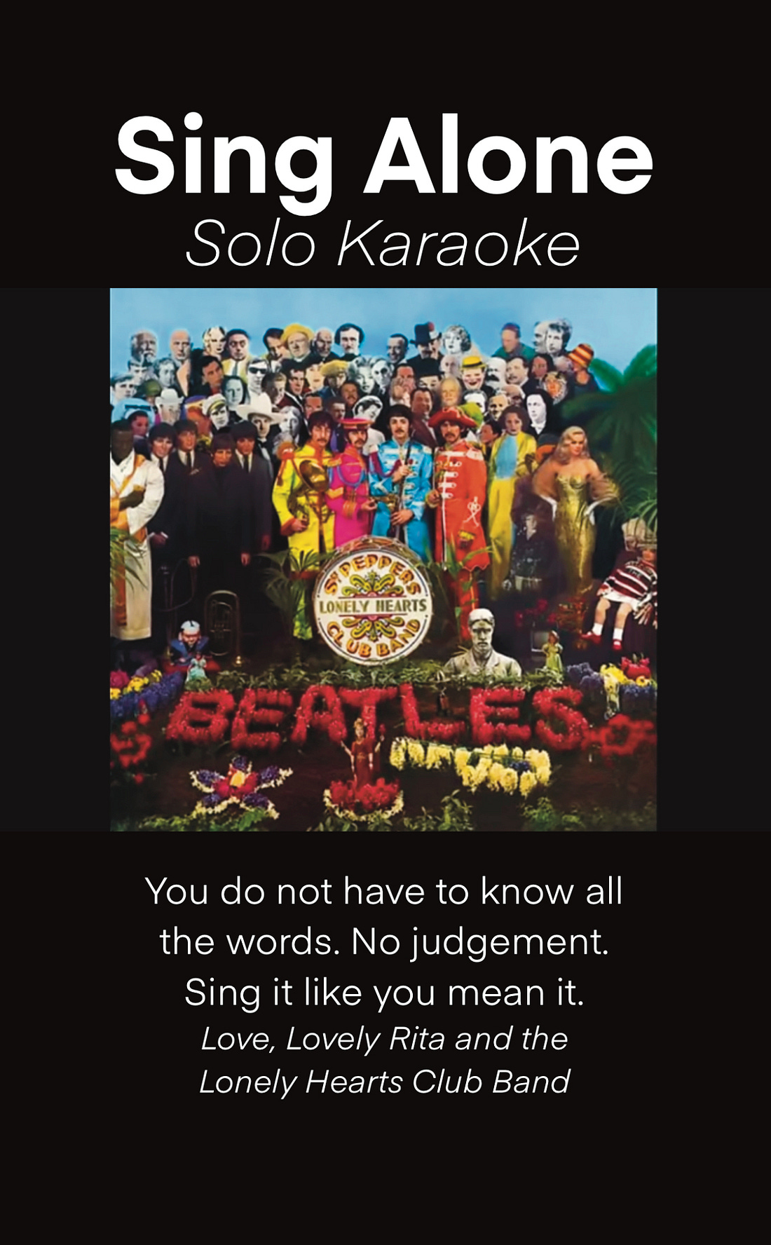 Welcome and welcome back. While I am creating I spend less time being grumpy. It’s a blessing that’s easy to accept. Even as I smash these words, I am simply happy to be here. Hi, welcome back. Thanks for taking a few minutes. This is MFQ Emerson. MFQ stands for My Favorite Quotes, and this Emerson and I go back a long way. He wrote: “When I speak, I define, I confine, and am less.”And I never saw the confinement as a small room, a cell, a prison, a house, a village. My response to that is simply.. This. “With a single word, I may cleave the world in two.” I think the confinement is as simple as determining that there is an eye, and another. Along comes Einstein with his bicycle, and his quote: life is like riding a bicycle, and in order to keep your balance, you have to keep moving. And if we apply, the “keep moving” to the Emerson, we may get the idea to continue to redefine. Until you get to a place that is reasonable for the moment. It works. It’s efficient and functional and whatnot. When I speak, I define, I confine, and am less. And this speaking thing reminds me of Shushmouth, a doppelganger of mine that seemed to have floated into my consciousness urging me to … be more quiet. And, of course, that’s very scary. Right away, I think, Oh, what is the artist and me supposed to do if I’m not yakking? But maybe the quiet part is, the place we can tone it down, the place I can tone it down, is allowing some of my opinions to... What, wash away in the rain? Well, so we can ratchet it down. Ratchet down the noise a little. My own noise. I swear to you, I’m get kind of sick of my own opinions. Anyway, so that’s that MFQ, my favorite quote, Emerson. And I’ll put the Dwight thing here. Meet Dwight, the little hand puppet elephant. Dwight doesn’t have anything to say. I haven’t written him a script. I thought he was cute as heck. And what bothered me for the longest time is that his shirt wasn’t as long as a skirt. And there was my naked wrist showing, and I had thought for a long time that if I could only find a seamstress or a tailor, that could cloak the whole thing, life would be good. And so, I did find someone who’s good with thread and needles. And having spoke the problem, or the situation out loud, in front of other people, or even out loud to myself, I quickly decided that if I cut up one of my dead socks and put it on my wrist, voila. The situation has rectified. So what I thought was a problem for years kind of disappeared when I spoke it out loud. And I don’t know where else that approach may fix anything or solve any problems. I don’t know. But there is something about the power of the word, the power of the spoken word, the power of the voice, the way the voice activates, the vagus nerve, singing, or humming, or, goodness sakes, breathing, and let’s not go off in any of those directions here and now, maybe later. And so the singing thing brings me up to solo karaoke, or the sing alone. Sing Alone. In the image, there’s the Sergeant Pepper’s album cover. And or was it Magical Mystery Tour, and shouldn’t I look right now? Yes, I should look right now. Thanks for staying tuned. So there I am on YouTube, and I see that the whole Beatles album is right there, and while I’m pretty sure that I don’t remember all the words, anyway, I had the opportunity to turn that rascal up and belt it out, all by myself. And what a wonderful, what a great release it was. What great fun. It’s so I simply pass that idea or opportunity along to you as well. Find some of your own music. And get up and move. You know, people say, if you’ve heard, you may have said, Oh, I can’t sing, I can’t sing, and... And so maybe you don’t, but if no one’s there to judge you, it goes a lot easier. Energetic. Anyhow. I think that’s it for now. Thanks for stopping by. I appreciate it. Take good care of yourself. Take some time for your self. Perhaps a one-minute Joy Breath Meditation. Relax. (ha ha). Slow your breathing. Remember several moments of joy you have felt in your life until you can feel the joy as if it’s happening again in this very moment. Blessings to you! |